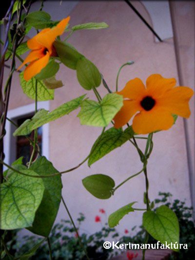 A Szárnyas feketeszem (Thunbergia alata) növekedésben felveszi a versenyt a hajnalkával, ha jó körülményeket – napos fekvés, nem rizsföldeket idéző árasztó öntözés, megfelelő támaszték – biztosítunk számára, akár három méteres magasságot is meghódít.